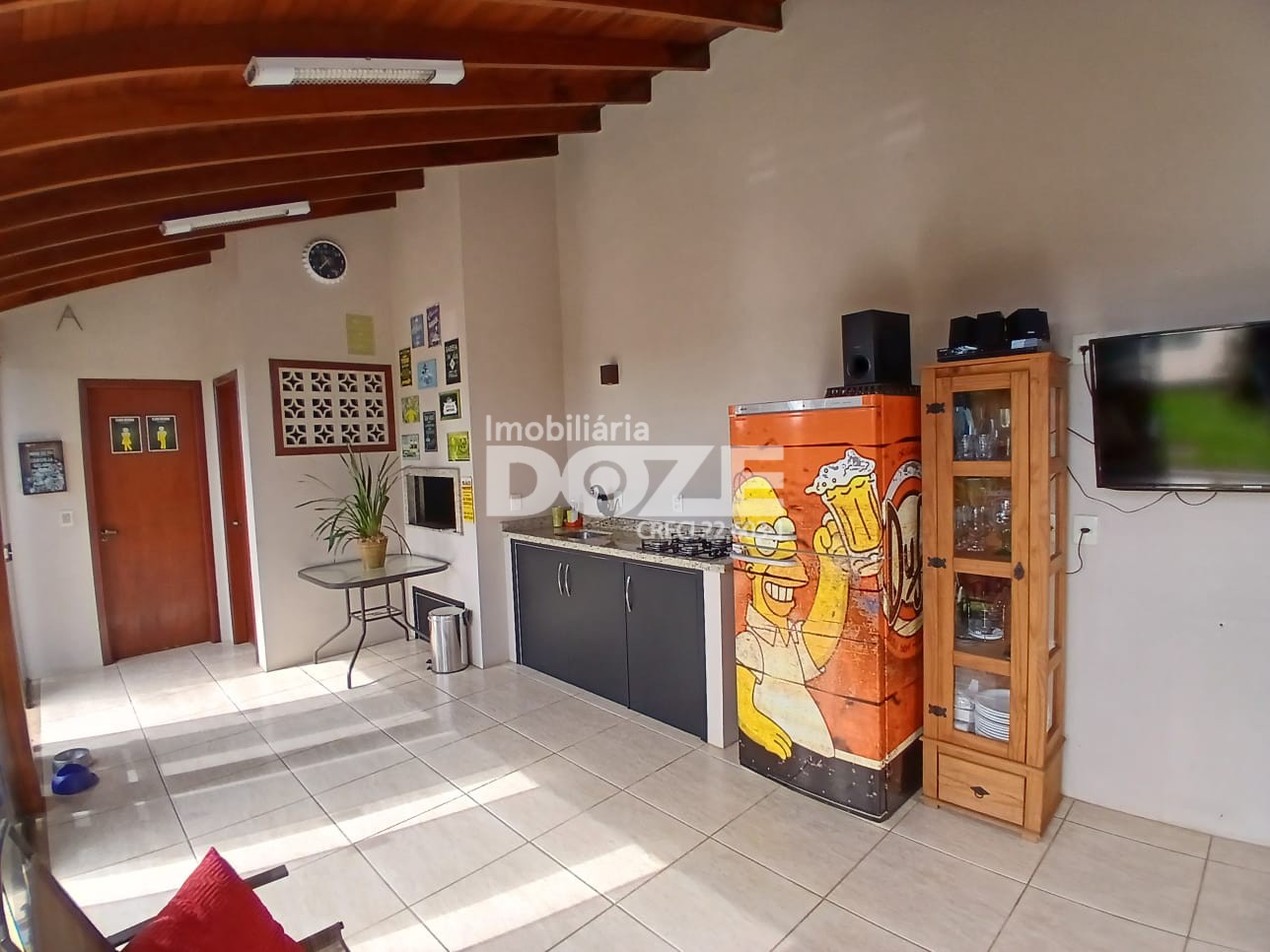 Destaca-se também um amplo quiosque, rodeado por um belo jardim e uma piscina.