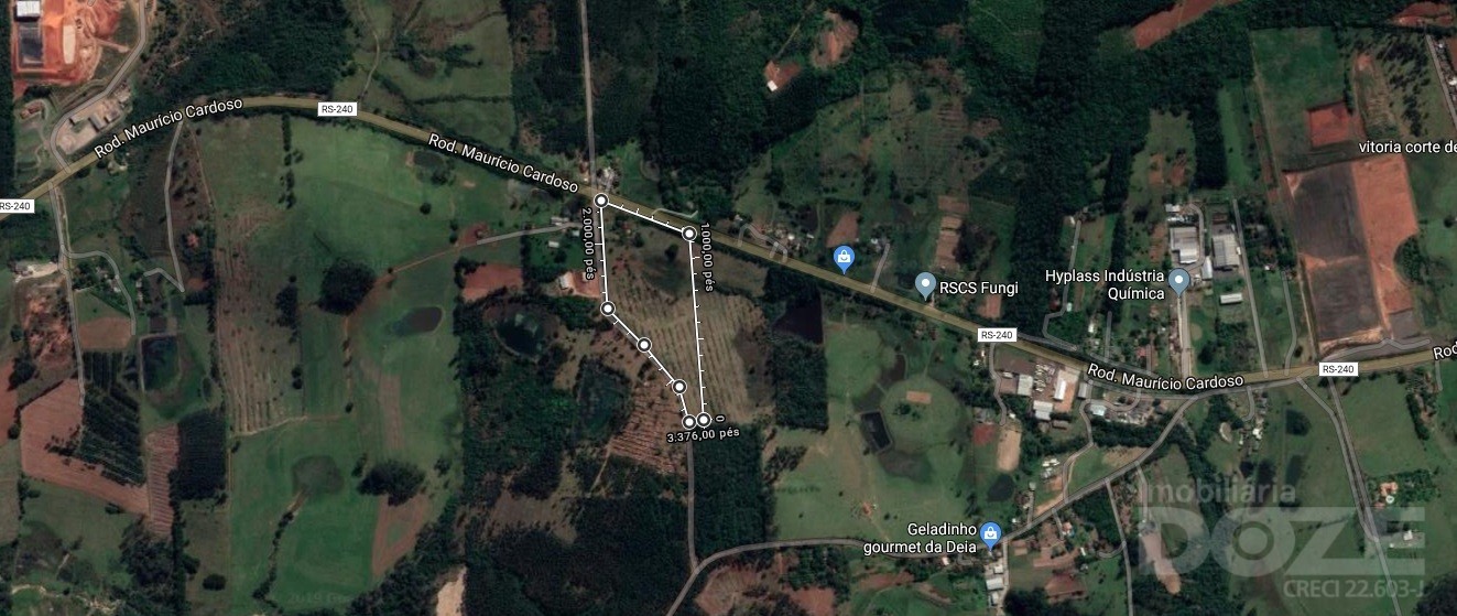 Área de terras, localizada as margens da Rodovia RS 240, em zona industrial do município com 4,7ha. A área possui 2 acessos: pela Rodovia RS 240, com 199,30m; e pela Estrada da Divisão, com 468,50m.