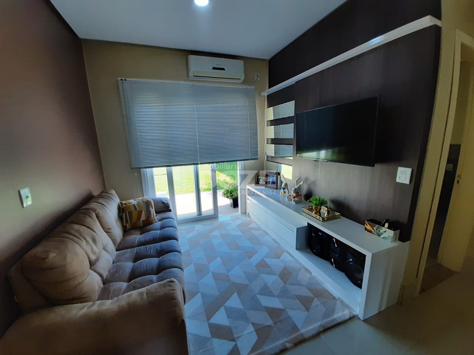 - Sala de estar com painel sob medida;